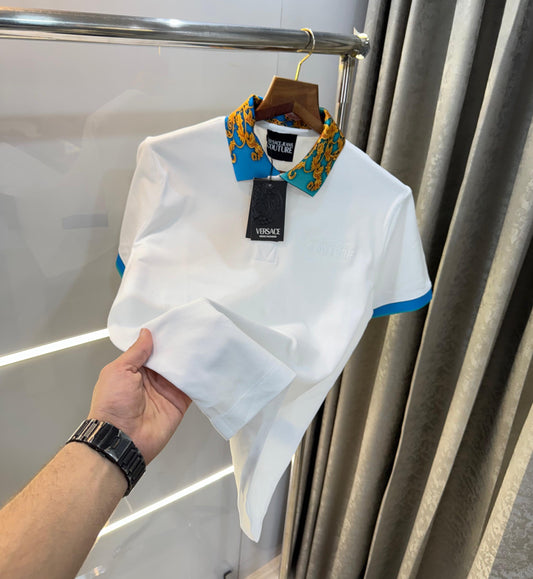 Versace Couture White Collar Design Imported Polo T-Shirt