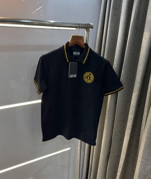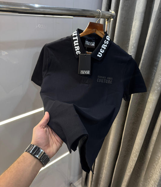 Versace Couture Black Embroidery Logo Imported Polo T-Shirt