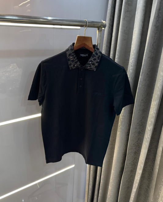 Versace Couture Black Diamond Collar Logo Imported Polo T-Shirt