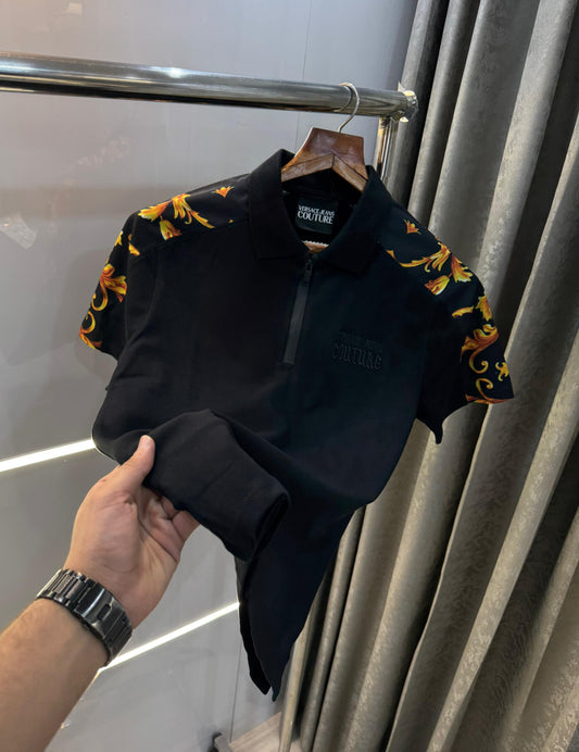 Versace Couture Black Shoulder Logo Print Imported Polo T-Shirt
